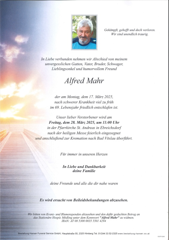 in diesen Tagen fühlen wir mit Ihnen und wünschen Ihnen von Herzen, dass Sie aus den glücklichen Erinnerungen Kraft schöpfen, um positiv in die Zukunft zu gehen. Diese Gedenkseite möge Ihnen dabei helfen, Ihre Trauer zu teilen und das Andenken gemeinsam wachzuhalten.