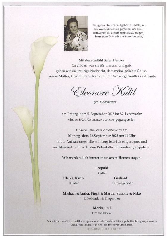 Aufrichtiges Beileid und liebe Grüße aus Seckau.