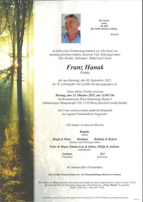 Liebe Familie, mein herzliches Beileid an euch alle! Ich hab auch noch so schöne Erinnerungen an euer Haus und die nette Zeit bei euch! Ich bin in Gedanke bei euch und schicke euch viel Kraft in dieser Zeit! Alles Liebe Marlies