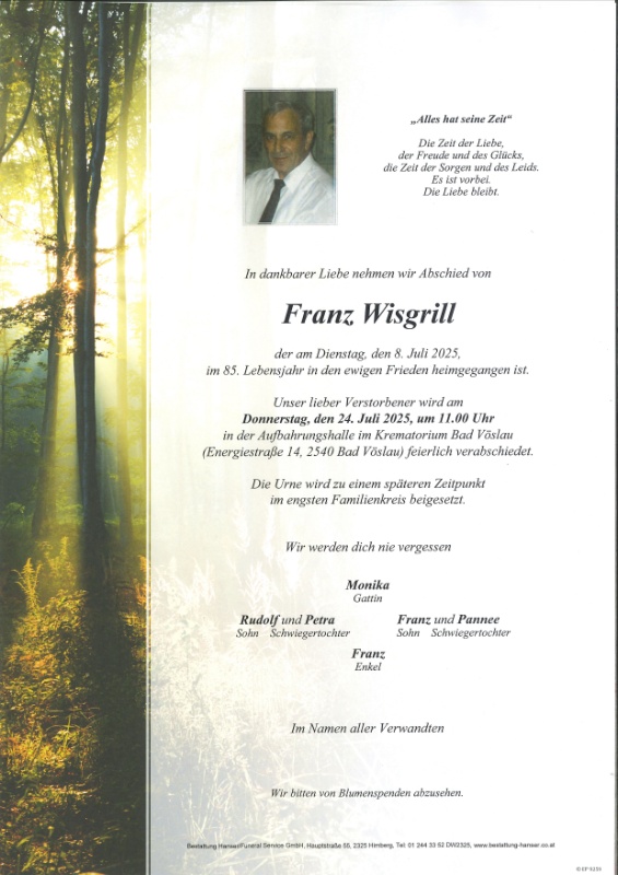 wir wünschen Ihnen von Herzen viel Kraft, dass Sie Menschen um sich haben, die Ihnen in dieser schweren Zeit beistehen und Halt geben. Zusätzlich können Sie auf dieser Gedenkseite Erinnerungen teilen und so das Andenken gemeinsam wachhalten.
