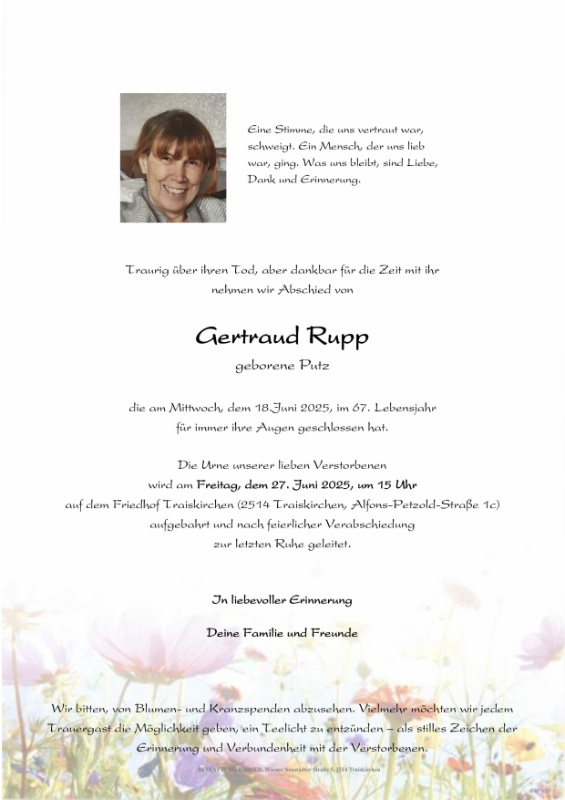 Sprechen Sie im Kondolenzbuch den Hinterbliebenen Ihr Beileid aus und teilen Sie persönliche Gedanken und Erinnerungen mit anderen.
