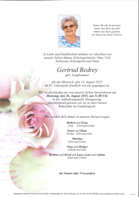 in dieser Zeit des Schmerzes wünschen wir Ihnen Kraft, den Verlust im Kreise Ihrer Liebsten zu verarbeiten. Als Zeichen unserer Anteilnahme und des Gedenkens entzünden wir dieses erste Licht. Möge diese Gedenkseite Ihnen helfen, Erinnerungen zu teilen und so das Andenken gemeinsam wachzuhalten.