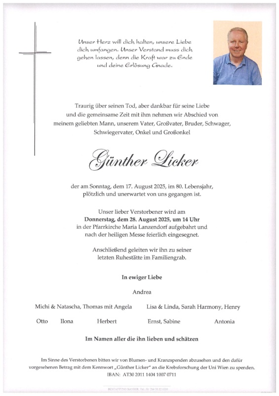 in dieser Zeit des Schmerzes wünschen wir Ihnen Kraft, den Verlust im Kreise Ihrer Liebsten zu verarbeiten. Als Zeichen unserer Anteilnahme und des Gedenkens entzünden wir dieses erste Licht. Möge diese Gedenkseite Ihnen helfen, Erinnerungen zu teilen und so das Andenken gemeinsam wachzuhalten.