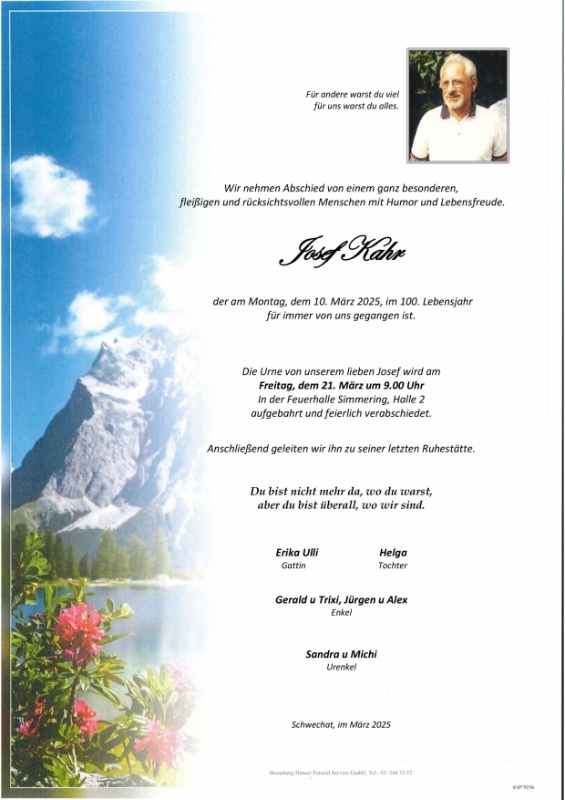 Josef war ein ganz besonders freundlicher und herzlicher Mensch! Wir wünschen dir, liebe Ulli, sowie der ganzen Familie viel Kraft - auch von meiner Mama.