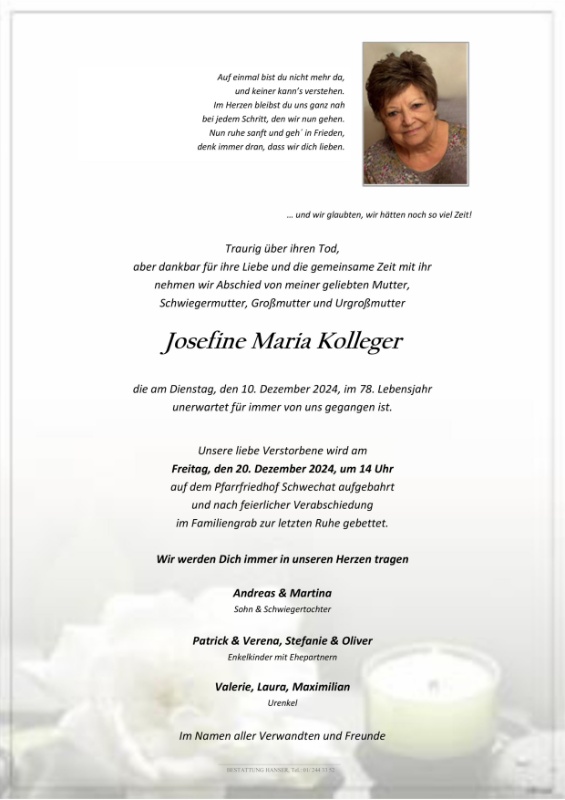 Pfiart di Tante Fini, ruhe sanft !!Mein tiefstes Mitgefühl und mein allerherzlichstes Beileid gelten Dir, lieber Andi, und Deiner Familie