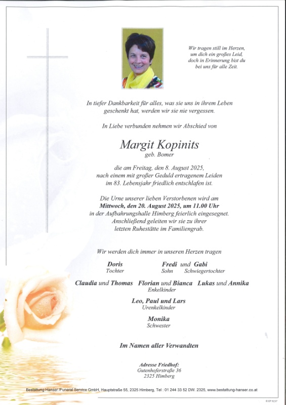 wir wünschen Ihnen für die kommende Zeit viel Kraft und dass es Ihnen gelingt, dankbar auf die positiven Erinnerungen zurückzublicken. Diese Gedenkseite möge Ihnen dabei helfen, Ihre Trauer zu teilen und das Andenken gemeinsam wachzuhalten.