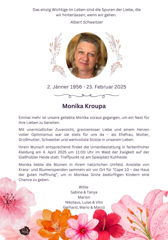 in dieser Zeit des Schmerzes wünschen wir Ihnen Kraft, den Verlust im Kreise Ihrer Liebsten zu verarbeiten. Als Zeichen unserer Anteilnahme und des Gedenkens entzünden wir dieses erste Licht. Möge diese Gedenkseite Ihnen helfen, Erinnerungen zu teilen und so das Andenken gemeinsam wachzuhalten.