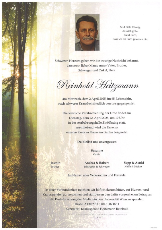 wir wünschen Ihnen von Herzen viel Kraft, dass Sie Menschen um sich haben, die Ihnen in dieser schweren Zeit beistehen und Halt geben. Zusätzlich können Sie auf dieser Gedenkseite Erinnerungen teilen und so das Andenken gemeinsam wachhalten.