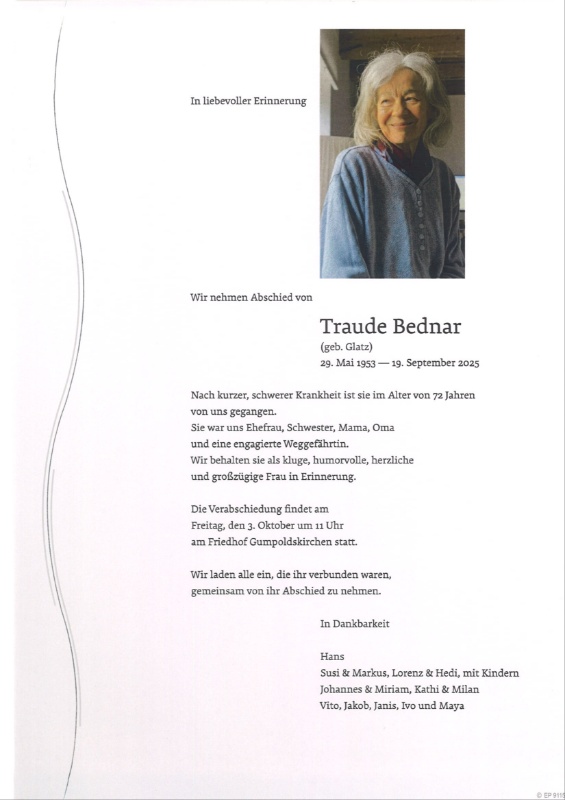 in diesen Tagen fühlen wir mit Ihnen und wünschen Ihnen von Herzen, dass Sie aus den glücklichen Erinnerungen Kraft schöpfen, um positiv in die Zukunft zu gehen. Diese Gedenkseite möge Ihnen dabei helfen, Ihre Trauer zu teilen und das Andenken gemeinsam wachzuhalten.
